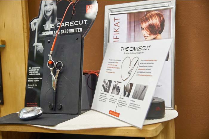 THE CARECUT - Haare geschont per Haarschnitt mit der heißen Schere! Gerade lange Haare werden stark durch verschiedene Einflüsse wie Sonnenstrahlen (ultraviolette Strahlung), mechanische Belastungen (Glätten oder auch Föhnen) sowie chemischen Beanspruchungen wie Färben strapaziert! Bereits Haare "ab Schulterlänge" können kraftlos, dünn und spröde werden. Die Gefahr von Spliss entsteht! Abhilfe schafft hier die "heiße Schere" - THE CARECUT! Mit dieser Technik wird die Messerschneide sanft erwärmt und elektronisch geregelt. Die warmen Klingen versiegeln das Haar direkt beim Schneiden. Die Haarschnittflächen werden gleichmäßig mit Keratin belegt und schließt so die Haarspitzen. So wird durch THE CARECUT Haarbruch und Spliss bestens vorgebeugt sowie Austrocknung verhindert!